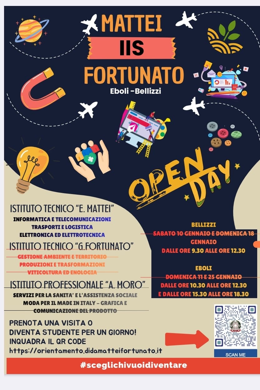 | Attività di orientamento dell’Istituto Istruzione Superiore “Mattei – Fortunato” di Eboli-Bellizzi Presentazione dell’Istituto Appuntamenti Open day |